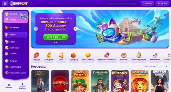 Στο Robocat Casino θα βρείτε φρουτάκια, επιτραπέζια παιχνίδια (μπλάκτζακ, ρουλέτα, μπακαρά), παραλλαγές πόκερ, ζωντανό καζίνο και τμήμα αθλητικού στοιχήματος για ποντάρισμα σε διάφορα σπορ.